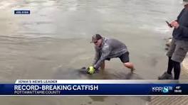| Big Fish! Iowa angler sets new state record for largest catfish | News | kwwl.com ... scale. The record-breaking fish then traveled back to the Missouri River where George released it back to the water. The DNR says blue catfish are ...