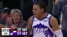 INSANE 2OT ENDING Jazz vs Bulls | November 16, 2025 - YouTube Keyonte George drilled a right-arc three with 0.8 seconds left in double overtime as the Utah Jazz defeated the Chicago Bulls 150–147 in a 2OT ...